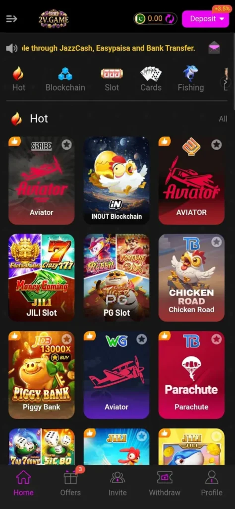 The 2V Game is becoming one of the fastest-growing casino platforms in Pakistan with simple deposits and withdrawals through JazzCash and EasyPaisa. Compared to many international casino apps, this platform focuses on smooth gameplay, secure transactions, and real earning opportunities for both beginners and experienced players. Pakistani users can enjoy gaming without using any VPN, making it more convenient than foreign casino platforms. The 2V Game offers daily bonuses, free spins, and exciting rewards that keep players active and entertained. With instant deposits and fast withdrawals, users can easily access real cash winnings through trusted local payment methods. This app is designed for users who want a secure and reliable real-money gaming experience.