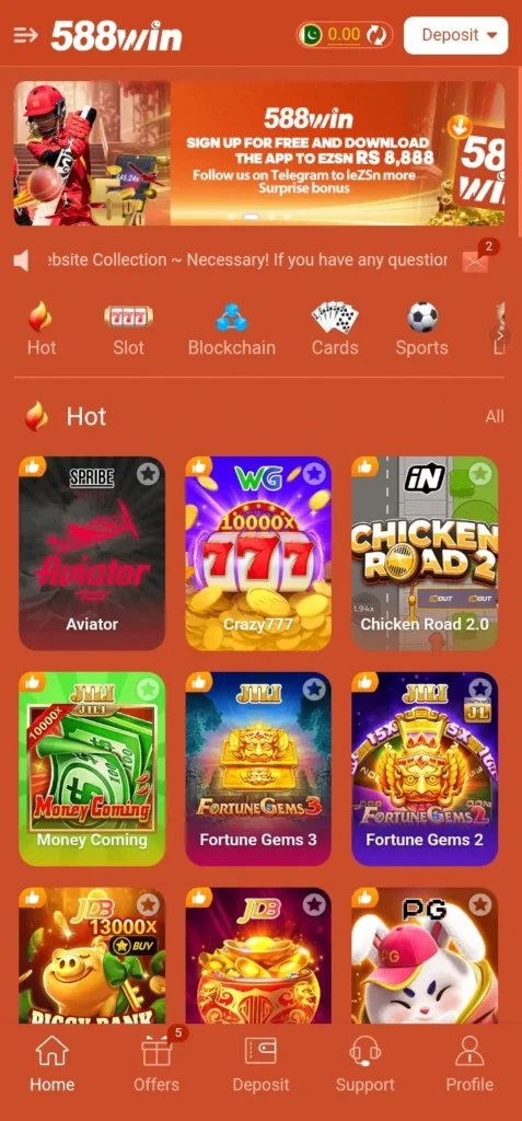 It is a real-money gaming platform offering multiple games and rewards. - How to download 588Win Game APK?