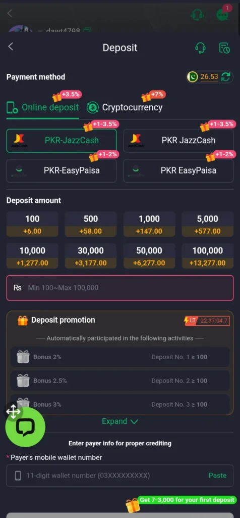 All deposits and withdrawals are handled through secure local payment options such as JazzCash and EasyPaisa. The system ensures smooth transactions with no hidden charges, giving users confidence while managing their balance within the app.